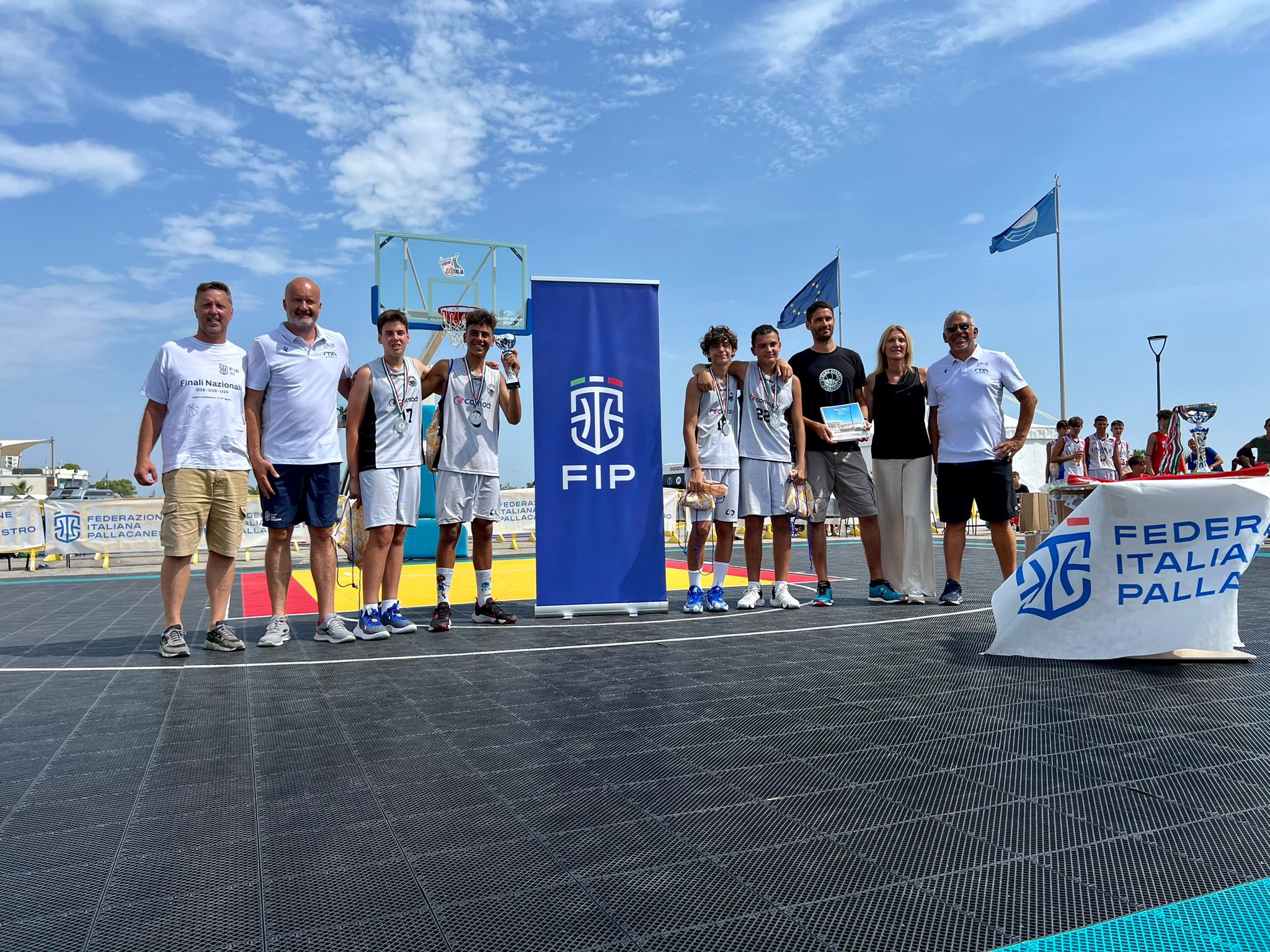 A effettuare le premiazioni sono stati Giovanni Adami, presidente del CR Friuli Venezia Giulia che ha affiancato la FIP nell’organizzazione dell’evento, insieme al Sindaco di Lignano Sabbiadoro Laura Giorgi, a Gek Galanda (consigliere federale con delega per il 3×3 Giovanile) e tante altre facce note della pallacanestro friulana che con piacere hanno raggiunto Lignano Sabbiadoro per assistere alle Finali Nazionali 3×3 Giovanili.